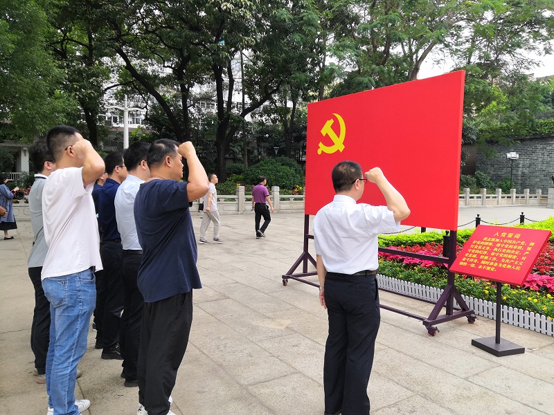 黨員們?cè)谥袊伯a(chǎn)黨黨旗前重溫了入黨誓詞,鏗鏘有力的誓詞響徹廣場