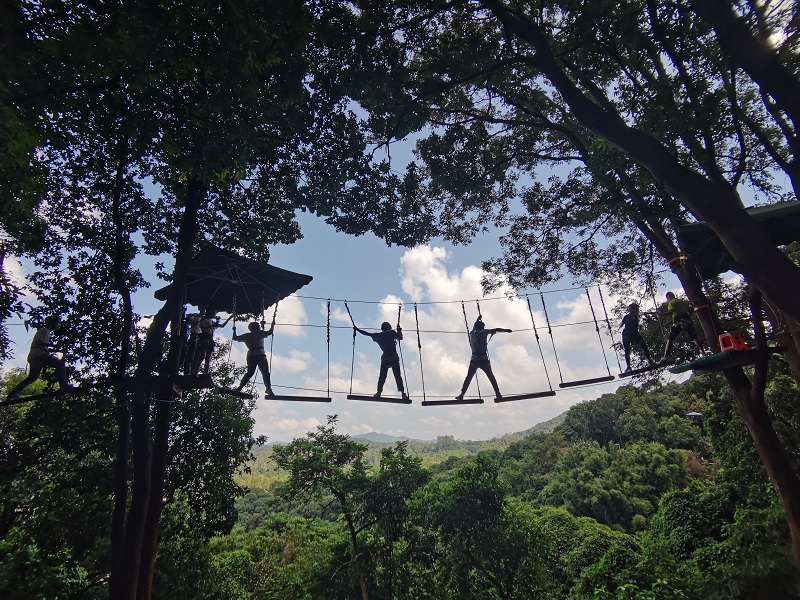 在團(tuán)隊(duì)拓展項(xiàng)目環(huán)節(jié),面對(duì)高空中的重重障礙,大家互相鼓勵(lì)、互相幫助,克服心理的恐懼,突破了一個(gè)又一個(gè)艱難關(guān)卡,挑戰(zhàn)著自己的體能和耐力的極限,最終每個(gè)小伙伴都順利通過了繩索,到達(dá)了終點(diǎn),順利完成拓展項(xiàng)目。