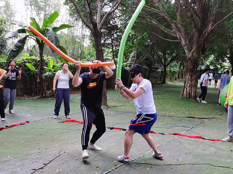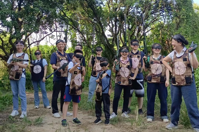 本次活動由戶外拓展、集體生日會及燒烤野炊三部分組成。在戶外拓展環(huán)節(jié),兩組隊伍開展了暖場破冰、毛毛蟲大戰(zhàn)、無敵風(fēng)火輪、拔河等多個有趣的集體比賽項目。大家在各自隊長的帶領(lǐng)下同心協(xié)力,各顯神通,特別是在“蒙眼大戰(zhàn)”、“毛毛蟲大戰(zhàn)”中,兩隊“大打出手”,互不相讓,引得圍觀人員個個捧腹大笑,現(xiàn)場氣氛熱烈非凡。在真人CS活動中,大家互相抱團,自發(fā)組建隊伍,在短短的十分鐘內(nèi)就將對手全部擊敗,充分展現(xiàn)了總院員工協(xié)同作戰(zhàn)的能力和勇往直前、積極向上的精神面貌。