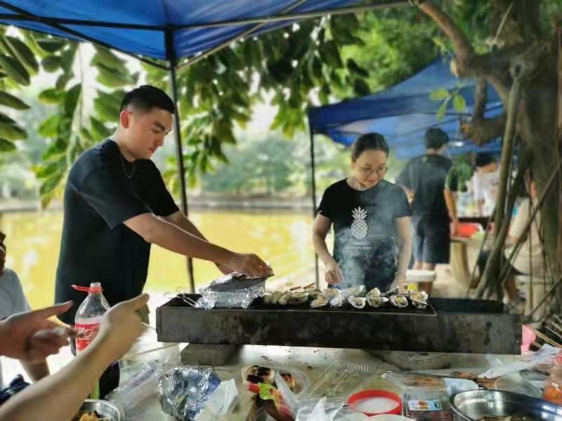 人間煙火氣,最撫凡人心。結(jié)束了激動人心的團隊比拼后,就是最具期待的燒烤野炊。同事們都主動積極地準(zhǔn)備食材,分工合作,配合默契,生火、洗菜、燒烤、炒菜……各工序有條不紊,大廚們也迫不及待地想要大展廚藝,除了驚現(xiàn)刷蠔三人組,還有燒烤小能手、炒菜王、牛排女王!眨眼間,各種美食便呈現(xiàn)眼前:土豆?fàn)F雞、泡菜魚、糖醋排骨……讓人不得不感嘆到總院真的是臥虎藏龍,個個是“斜桿青年”,不僅業(yè)務(wù)能力強,廚藝也是杠杠的!