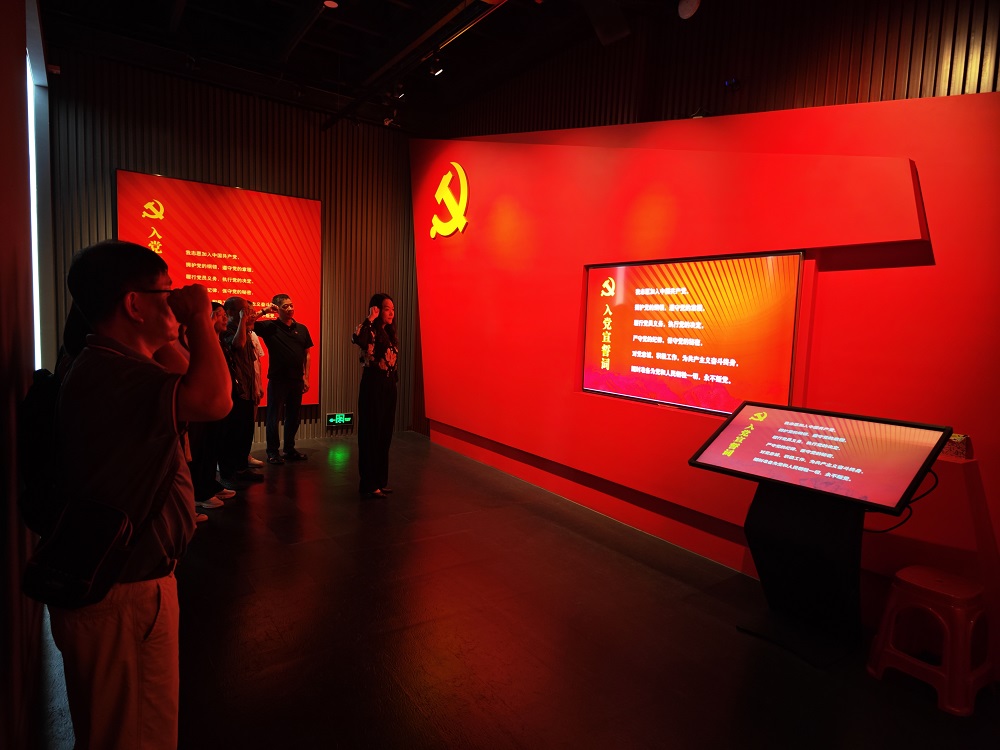 參觀完畢,在紀委書記陳劼的引領下,全體黨員干部面向黨旗重溫了入黨誓詞,以激發(fā)責任和擔當意識。